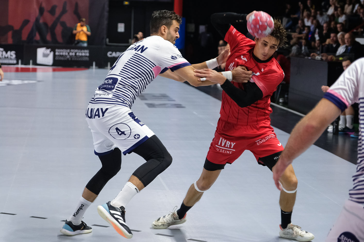© Le demi-centre Léo Martinez, bien pris par la défense bretonne. Mairie d’Ivry-sur-Seine - David Merle