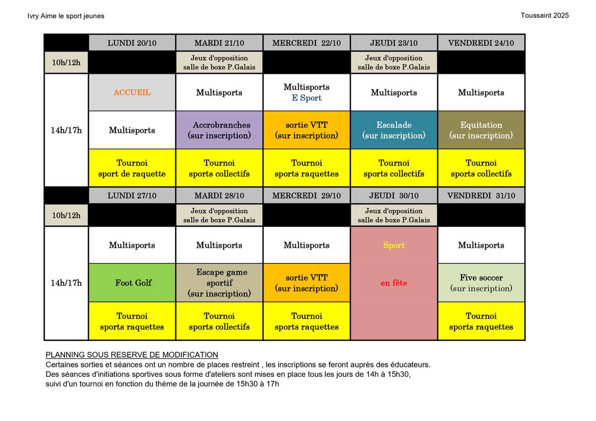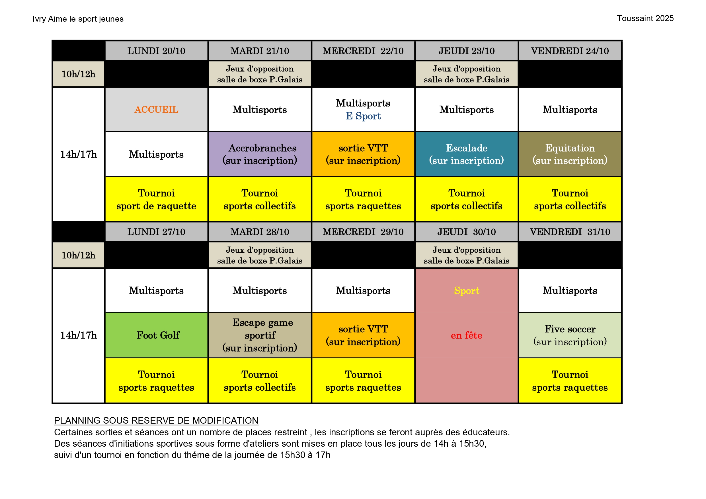 - Télécharger ICI le planning Ivry aime le sport adultes 2025/2026