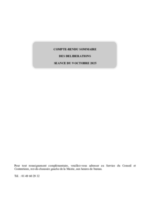 - Compte rendu sommaire des décisions du Conseil municipal du 22 octobre 2009